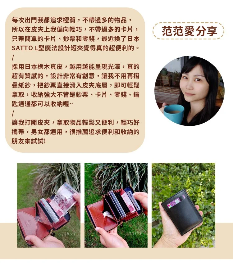 5分鐘前挑戰最薄迷你皮夾|SATTO 2.0 魔法設計皮夾 魔術大空間再升級,錢錢收納超Easy! - ➤ 日本SATTO栃木皮革短夾 1入 (可選顏色)NT$1098