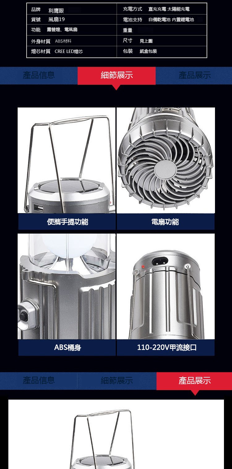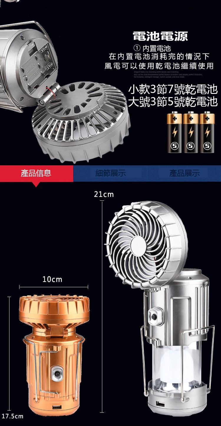4分鐘前【停電神器】戶外便攜大功率風扇太陽能帳篷燈【可給手機充電】 - 【家庭組合裝】停電神器可給手機充電2入組